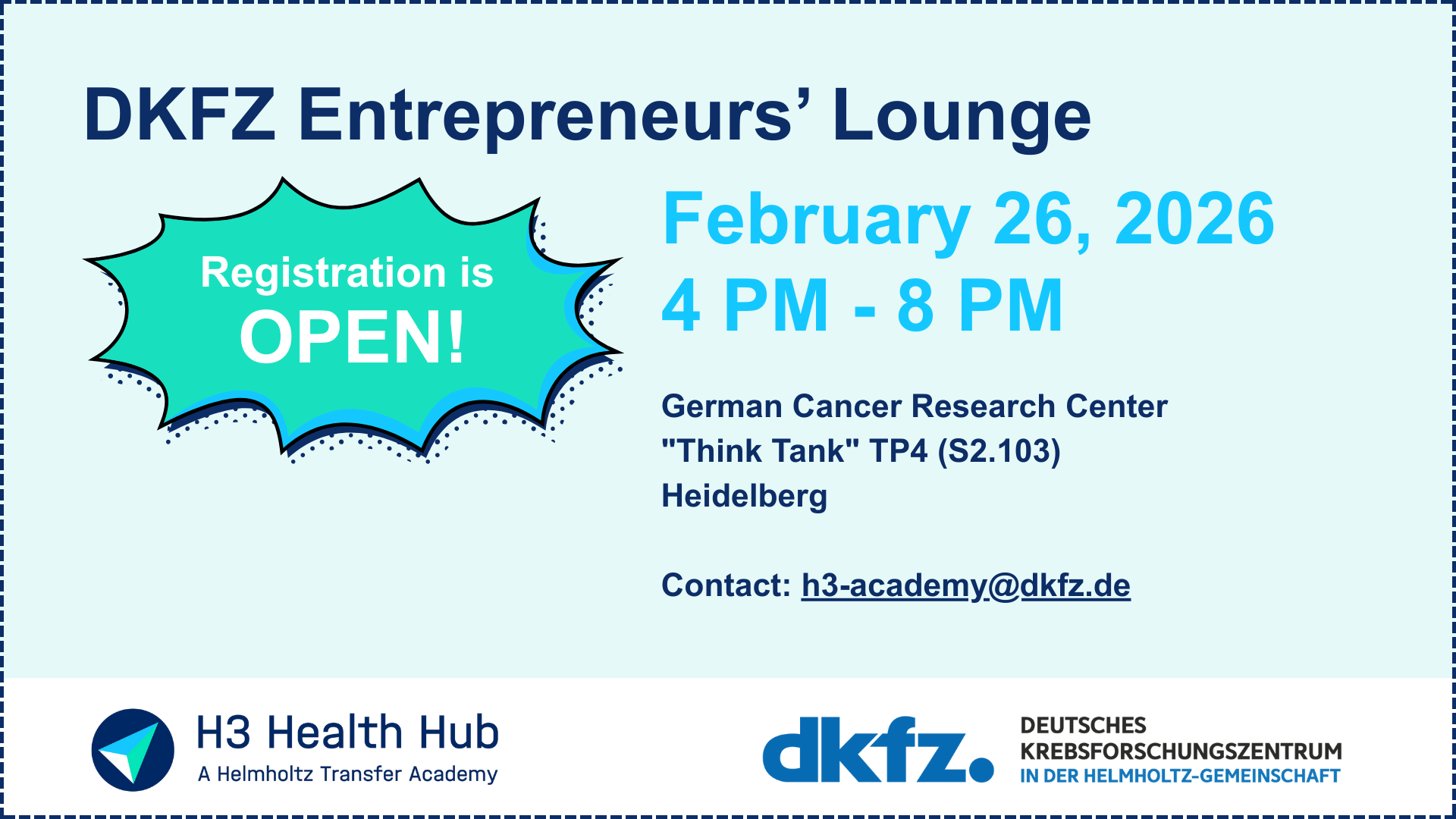 Join us for an inspiring evening connecting with current and former DKFZ colleagues who successfully founded a spin-off. In a casual setting, you can ask them all of your burning questions, and see how scientists just like you have taken their research to market.