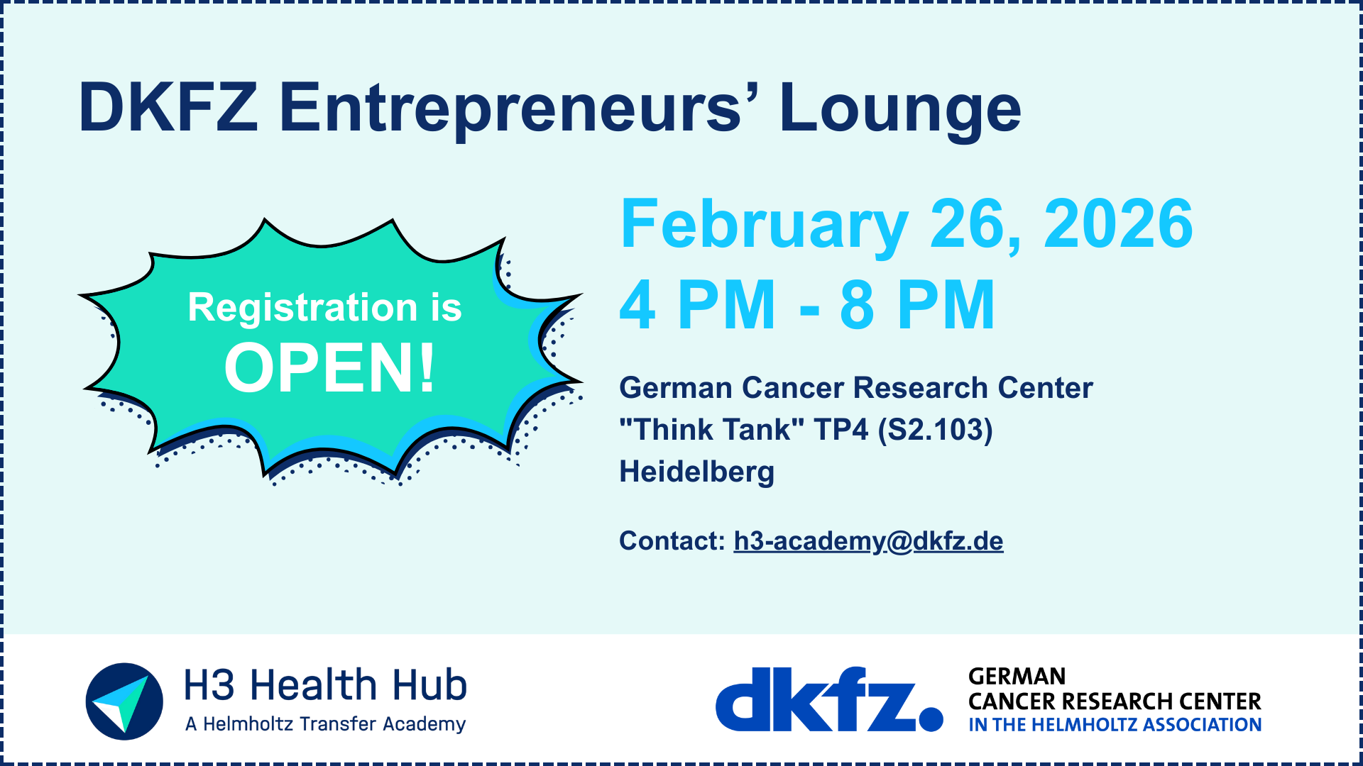 Join us for an inspiring evening connecting with current and former DKFZ colleagues who successfully founded a spin-off. In a casual setting, you can ask them all of your burning questions, and see how scientists just like you have taken their research to market.