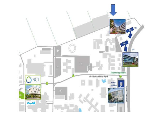From the main train station, take streetcar lines 21 or 24 (in the direction of Handschuhsheim) to the stop "Technologiepark"